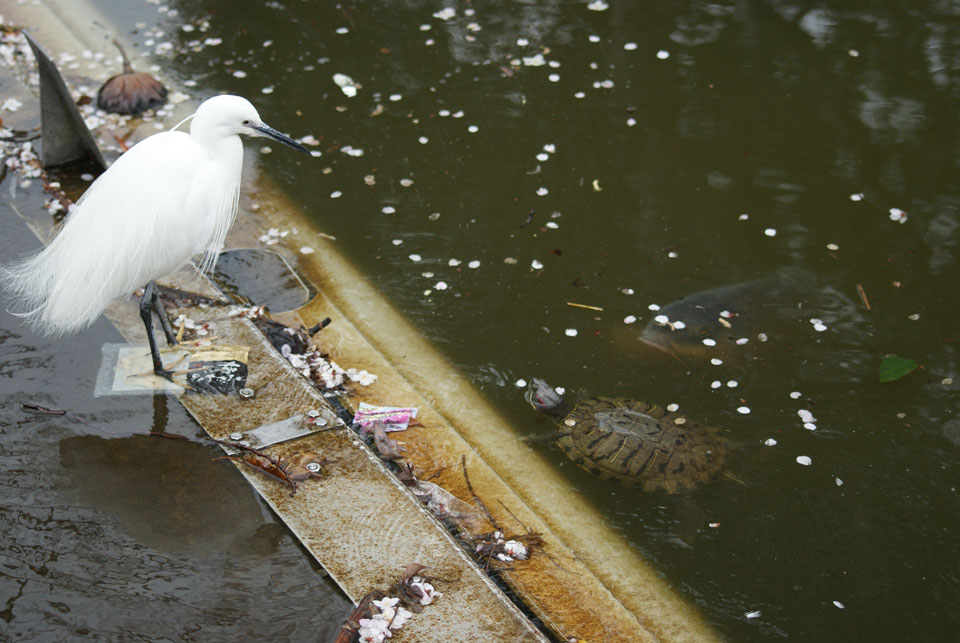 このあとサギはカメの亀頭をつっ突きましたが、カメが反撃に出たため、